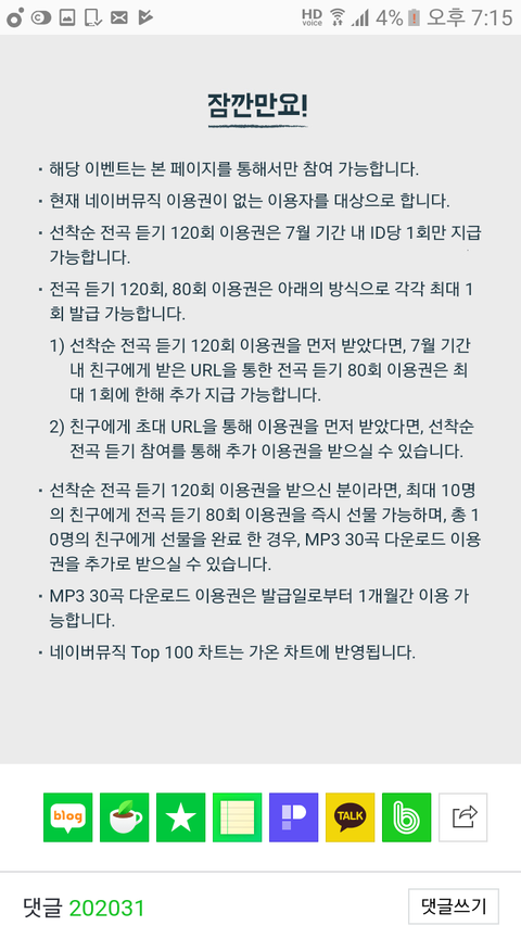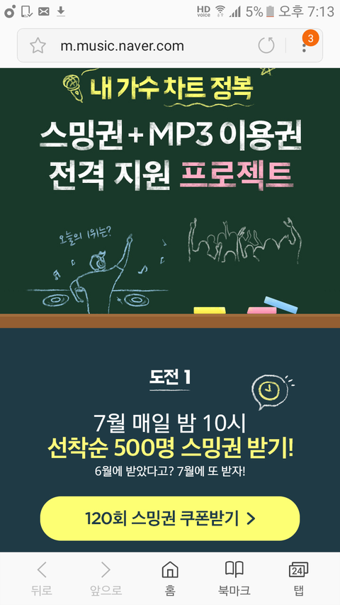 우선 ㄴㅇㅂ 뮤직은 밤 10시에 무료스밍권을 줘