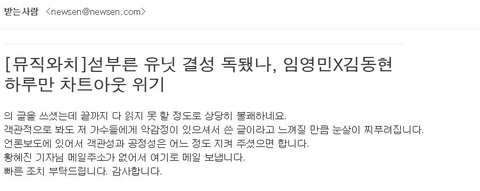 다들 메일 보내주길 바라. 메일 주소는 내가 보낸 메일 사진에 있어! 언능 애들 데뷔하기 전에 이 기사 내려가게 하자!