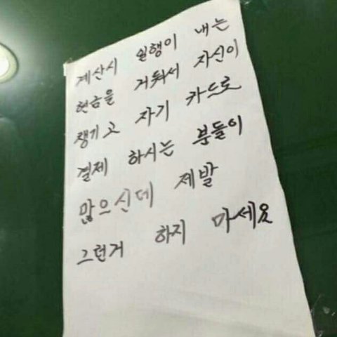 현금 환영 현금으로 계산해달라는 가게랑 다르게 저 문구는 ㅈㄴ 내가 뭐 나쁜 짓 하는 것도 아니고 그냥 하지말라고 하는거 ㅈㄴ빡침