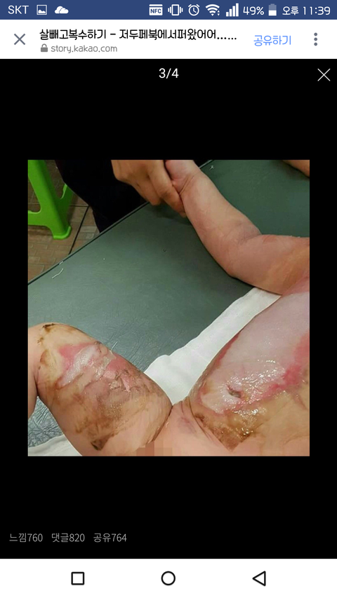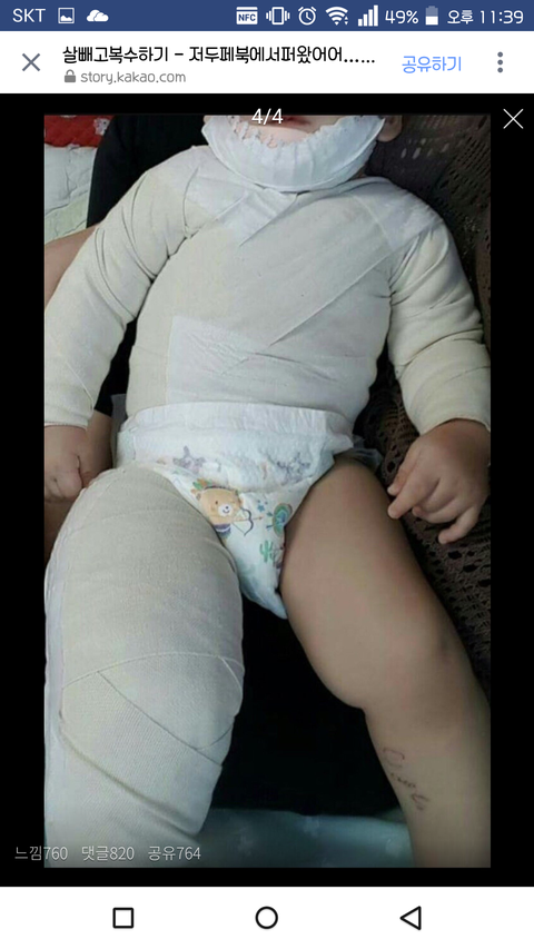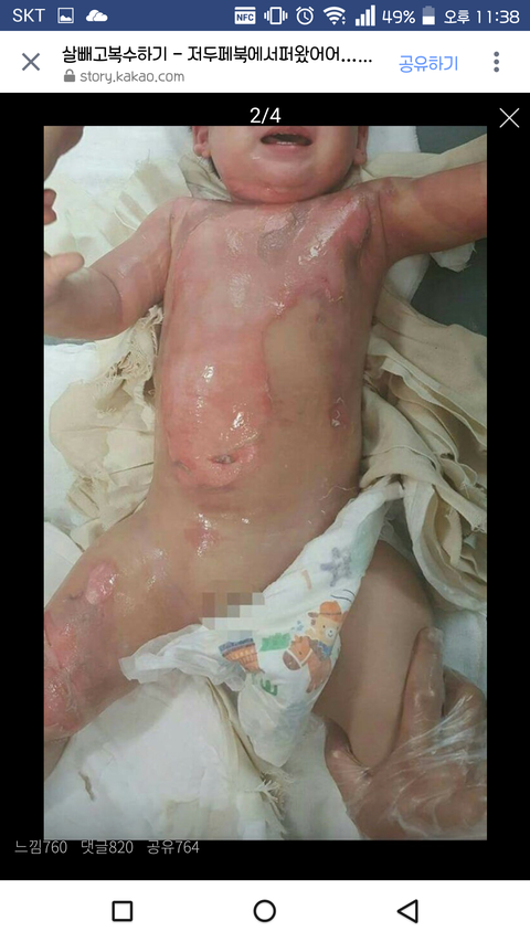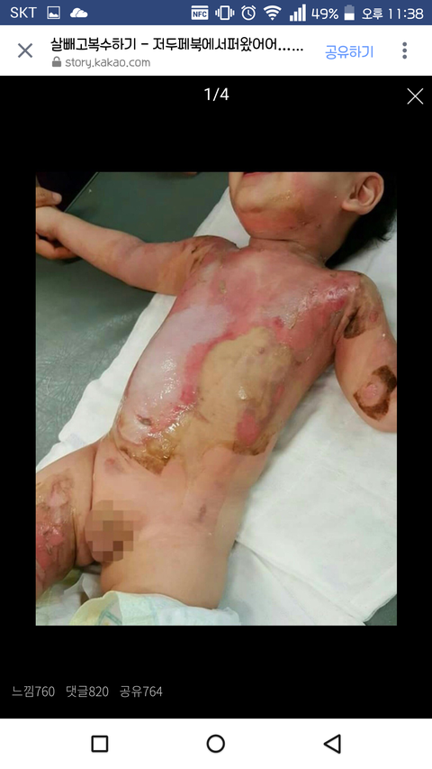 저희아들은 작년 8월17일 돌잔치를 4일앞두고 어린이집에서 목부터 가슴•배전체, 양쪽팔, 오른쪽허벅지까지 심재성2도 화상을 입었습니다.