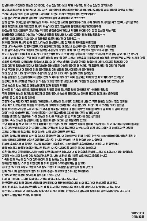 때는 윤기가 2015수능날이라서 자신 수능치기전날과 친후가 생각나서 적어봤나봄