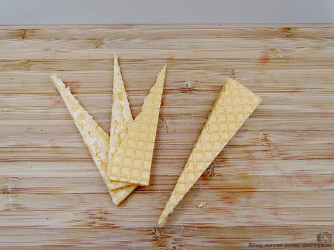 웨하스는 그냥 꽂는 것보다 대각선으로 잘라서 펼쳐주면 날개처럼 보여서 좀 더 예쁩니다.