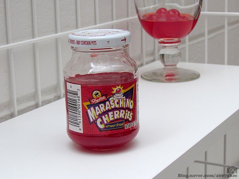 하지만 진짜 마라시노 체리를 먹어 본 적이 없는지라 인위적인 붉은색으로 밝게 빛나는 체리 통조림이 오히려 익숙합니다.