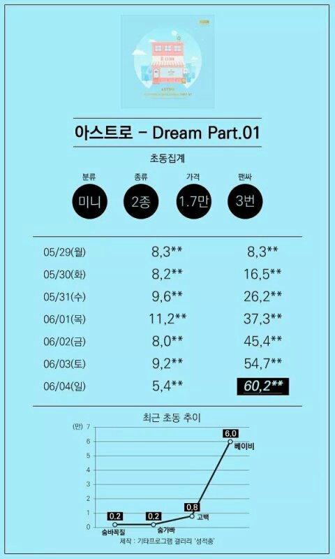 거기다가 주말엔 온라인 집계가 안나와서 이번에 엑소도 일요일에는 만장 남짓하게 팔았는데 아스트로는 주말에도 이렇게 많이팔았어!!