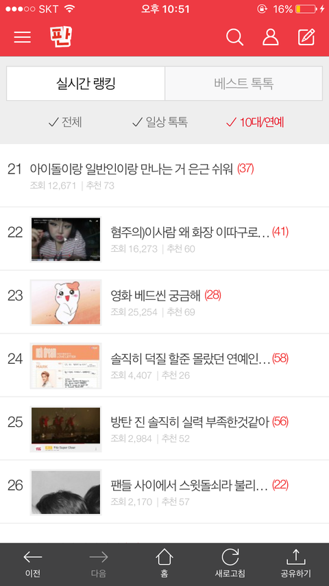 ++ 연예/10대 톡선 26위까지 갔어 ㅠㅠ 감격,,
