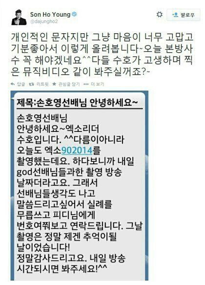 '대박매력' '음악방송에서 만나자, 가수 후배로서 잘부탁한다' 라며 게시물을 올림