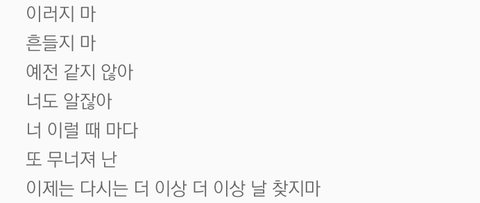 딱 흐름 변하면서 도영이의 이러지마~ 하는 데 감정이입 쩔구 그다음 해찬 유타 태일 순으로 한 소절씩 부르는데 크으....그 알 수없는 느낌이 너무 좋음......크으응으 그리고 애들 애절한 목소리가 너무 좋음 ㅋㅋ