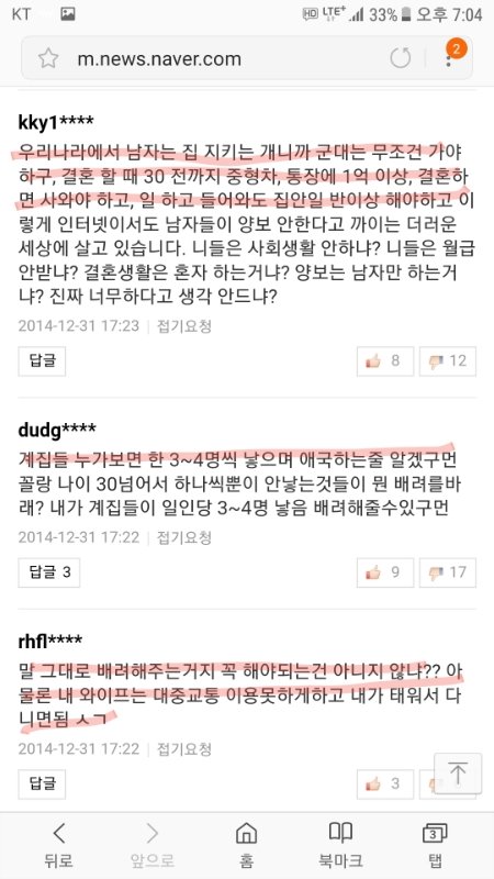나는 군대도 갔다왔는데 보상못받았으니까 남의 새끼 임신한 여자 자리양보 안해줄거다!"