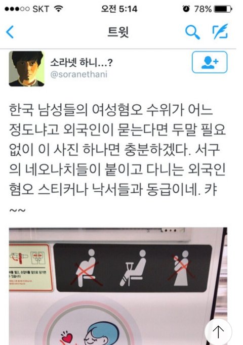 여혐종자들은 지하철 임산부 자리양보 그림에도 이렇게 테러를 하고다님...