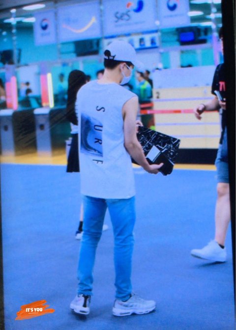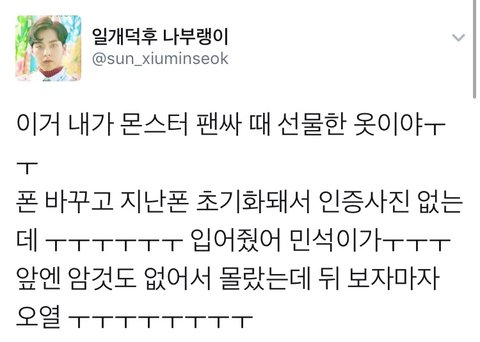 오늘 공항에서 시우민이 입은옷 팬선물이래