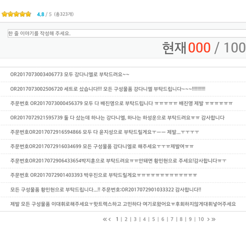 신/나라 앨범 살때 우리앨범 한줄이야기 (댓글)쓰는곳인데 어떻게 하나같이 자기 주문번호랑 원하는멤버 얘기밖에 안하냐..