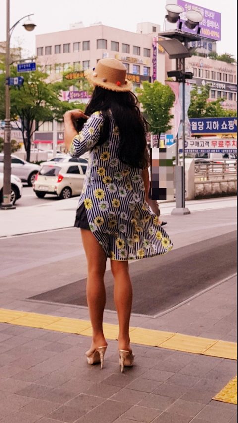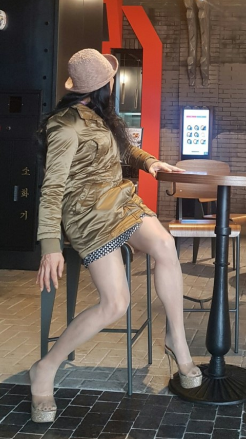 미니스커트 킬힐 망사스타킹 긴웨이브