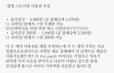 일단 현재 총대1은 음악감상권으로 결제하여 컴으로 암넷 돌리고 있으며 총공 전인 여덟시부터는 원활한 글 작성을 위해 폰으로 켜서 스밍중에 있습니다