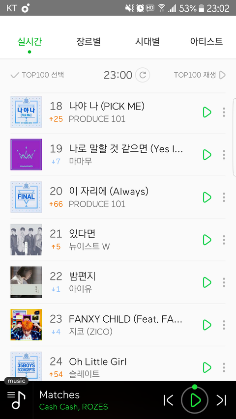 11시 차트를 가져온 이유는 워너블분들이 다른 가수를 후려치면서 힘을 들이지 않고도 1위는 기본이라고 말씀을 하셔서 가져와봤습니다.