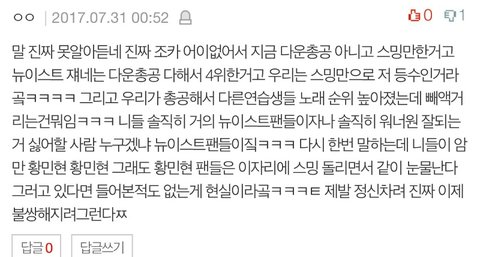 네 워너원 1위 많이 하시고요, 워너원이 1위를 하든 몇위를 하든 안 중요합니다.