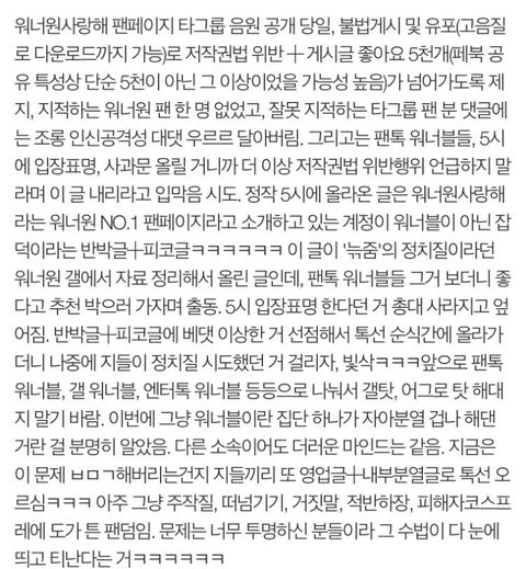 이렇게까지 말했는데 아직도 글의 요지를 파악 못하고 계시는 워너블분들이 참 많네요ㅎㅎ