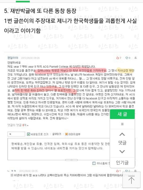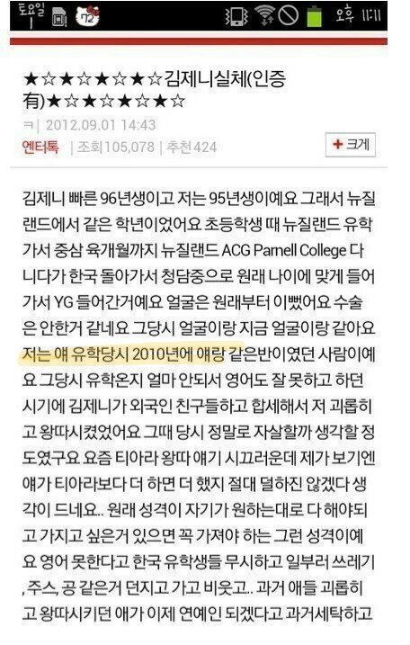 이 사람의 글을 보면 제니와 같은 학교를 다닌 것은 맞을거야. 그거 자체를 부정하진 않을게.