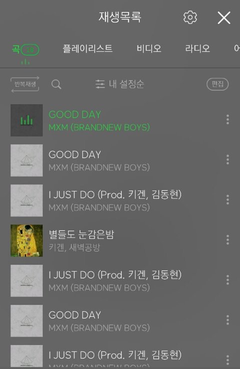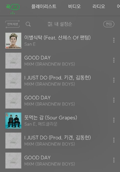 지금 차트에 없는 노래로 최대한 키겐님이나 브랜뉴식구들 노래로 중간 중간에 넣어주라!