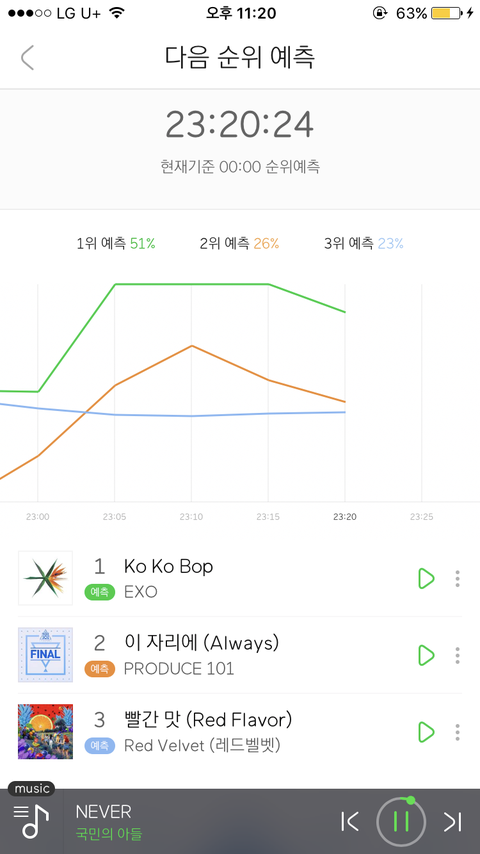 스밍인증) 지금 예측 떨어지고있서ㅠ
