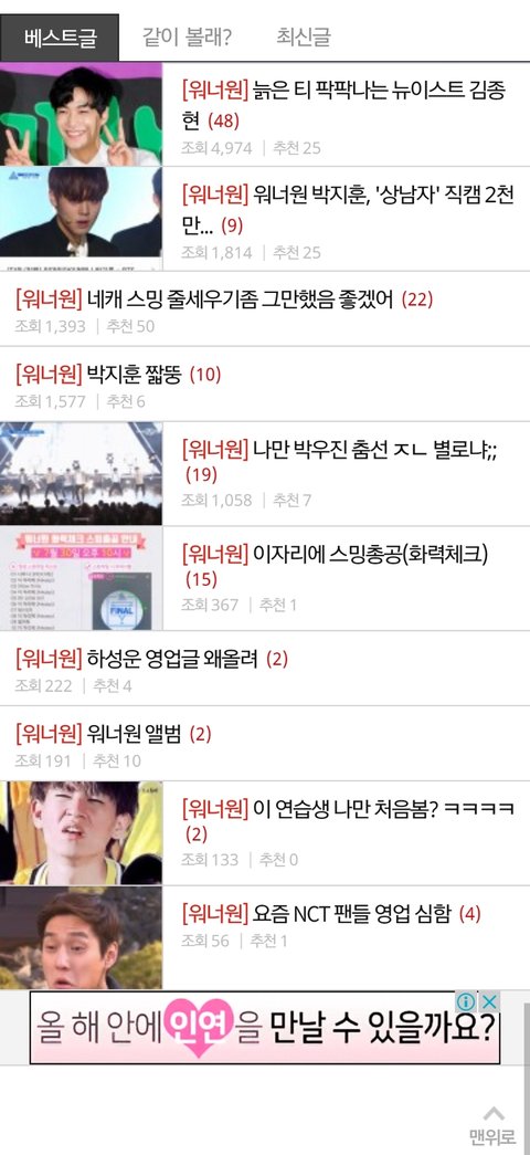 다른 애들 비하부터 자기 멤버 까는 글까지 베스트 대부분 글이 총체적 난국 이다