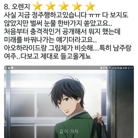 + 사진이 ㅠㅠㅠㅠ 더 이쁜거 넣고 싶은데 맘이 급해서 바로 올리느라ㅠㅠㅠㅠ 이거 처음보면 아오하라이드랑 그림체 비슷함. 근데 진짜 명작이야 이거.. 2016년에 나와서 잘 모르는사람 있을거같은데 사실 로맨스도 설레고 그런데 팍! 있진않고 우정들이 대단함 진짜 대박이니까 꼭 보길.... 보고나면 기분이 평안해짐