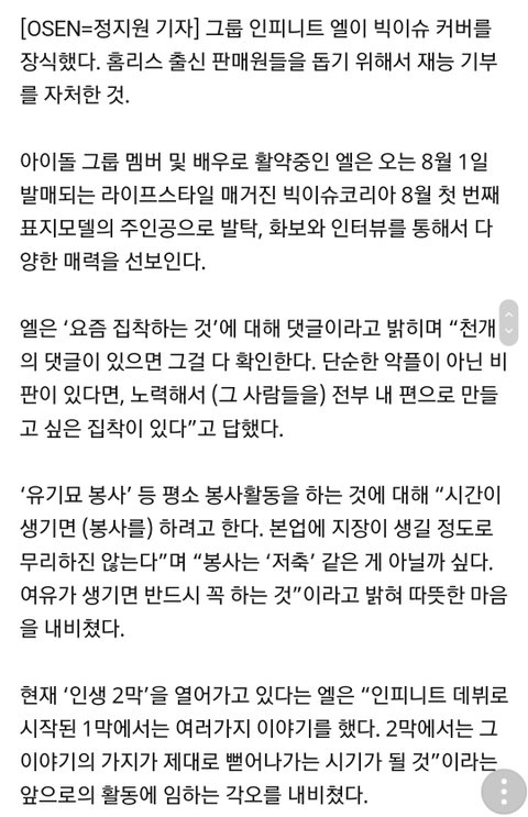 이번엔 빅이슈1코리아 재능기부로 표지 모델했나봐.