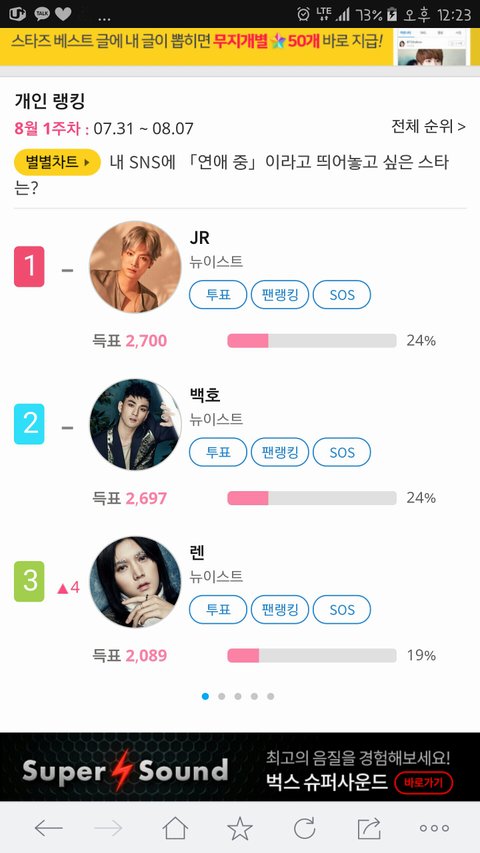 근데 지금 가수랭킹은 뉴이스트에서 뉴이스트W 로 바뀌어서 잘 알아보고 투표해야할것같아~! 우리 10주연속 하려면 뉴이스트-여보세요에 투표해야하는거아닌가ㅜㅜ 일단 0ㅋ에서 건의 올리는 러브들 있는거같으니까 좀더기다렷다가 투표하쟈!♥ 점심들맛있게먹어 ~!