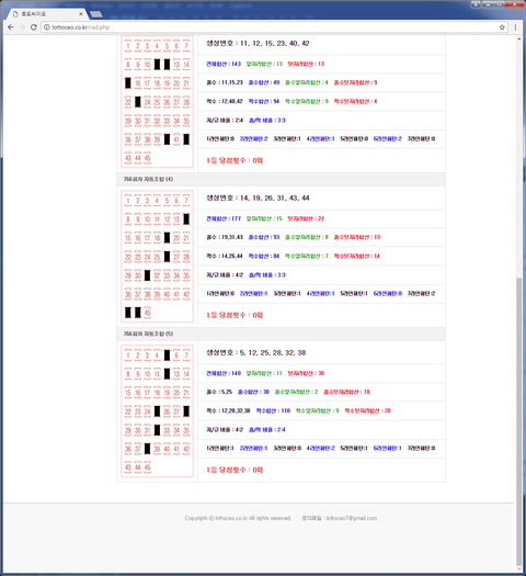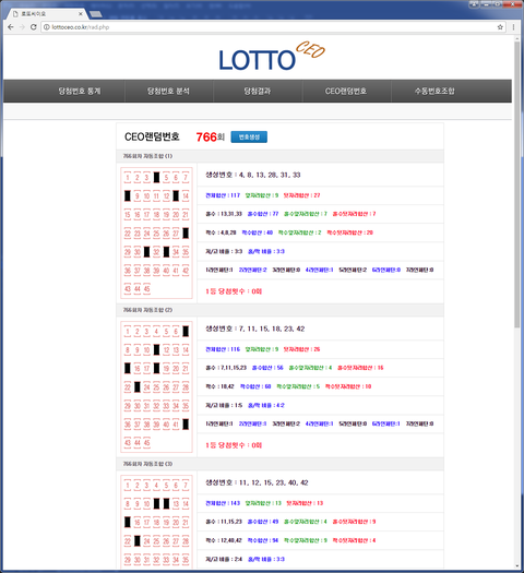 무료 로또 사이트 로또ceo 에서 자동번호 생성 결과 입니다.