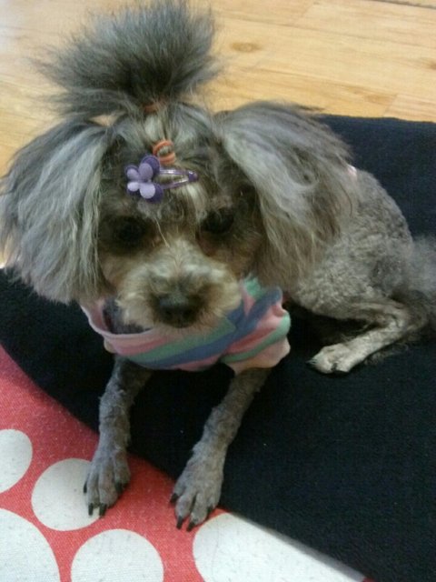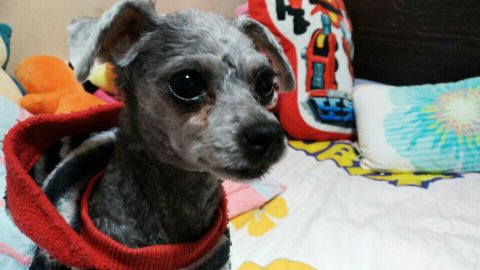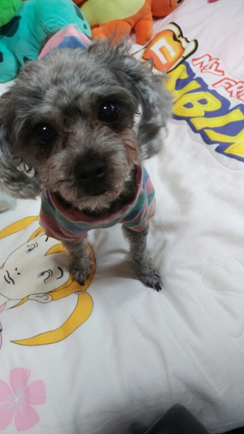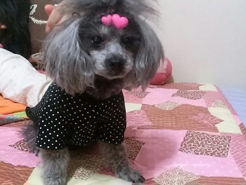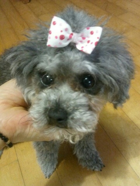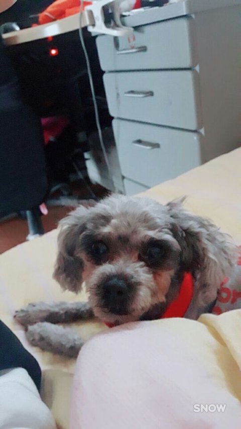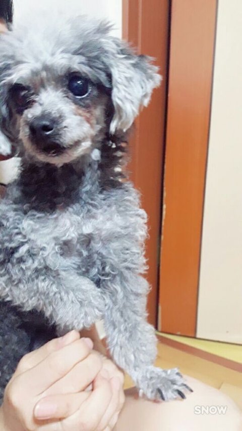 6. 특징: 실버푸들이고 사람들이 가끔 털색때문에 슈나우저로 착각하기도 합니다. 신장은 머리부터 엉덩이까지 25~30cm가량이며 두발로 일어설 경우 165~170인 사람의 무릎을 약간 넘습니다. 최소 1.2kg에서 최대 1.8kg입니다. 정말 작은 초소형견이에요. 보는 사람마다 애기냐고 하시는데 6살 먹은 아이입니다. 눈이 크고 동그란 편입니다. 코와 입주변 만지는걸 싫어합니다. 아마 지금 상태로는 무서워서 눈이 쳐져있을거 같아요. 기분에 따라 눈이 쳐지거나 동그랗거나 합니다. 중성화 수술된 암컷. 성대수술 되어있지만 소리가 큰 편입니다. 잘 짖지 않아요. 집에 누가 왔을때만 짖고 밖에서는 짖은 적이 없습니다. 관절이 아파 수술이력이 있고 또 수술을 해야하는 아이입니다. 산책하면 5분도 못걷고 주저앉거나 왼쪽 뒷다리를 들고 깽깽이를 뜁니다. 눈물이 너무 많아서 눈꼽과 눈물자국이 굉장히 심한편입니다. 리드줄 매면 고리 깨물고 가슴줄이나 목줄하는걸 굉장히 싫어합니다. 계단을 오르내리지 못합니다. 사람을 못물고 입에 손을 넣으면 기겁하며 고개를 돌립니다. 쓰다듬으려 손드는것도 겁먹고 움츠릴정도로 겁이 많아요. 모르는 사람이 만지려하면 몸을 떨고 무서워서 엎드립니다. 낯선사람이 다가오면 도망가지 않고 주저 앉아버립니다. 사람의 다리와 발을 특히 무서워해서 살짝만 움직여도 기겁하며 움츠립니다. 다리가 아파 서있을때 뒷다리를 많이벌리고 서있습니다. 기본 70도정도로 벌리고있고 다리를 잡아 11자로 세워두면 바로 다시 벌립니다. 한숨 많이쉬고 치아상태가 굉장히 안좋아 잘 씹지 못하며 입냄새가 굉장히 심합니다. 얼마전 발을 다쳐 발톱관리를 못해줘 약간 긴 상태입니다. 파양을 많이 당한 아이라 상처가 너무 많아요. 지금도 이번에도 버려졌다고 생각할까봐 너무 걱정입니다. 배변 훈련이 안되어있고 손이나 앉아 같은것도 못합니다. 배변훈련이 안되어있어 강아지를 따라다니며 똥오줌을 수시로 닦고 치워야합니다. 사료는 원래 먹던게 아니면 잘 먹지 않으려해요. 칩은 장착되어 있지 않으며 목걸이, 옷도 미착용한 상태입니다. 가족 외의 사람이 이름을 부르면 들은 척도 안하지만 지금은 반응할지도 모르겠습니다. 비가 오는 날을 굉장히 무서워하며 천둥 번개를 가장 무서워합니다. 귀를 만지면 싫어합니다. 미용한 상태, 털이 긴 상태 사진은 링크로 따로 첨부합니다. 본문 첨부사진은 가장 최근에 찍은 사진 입니다. 미용을 하면 다른 강아지 같아져 여러 상태를 올립니다