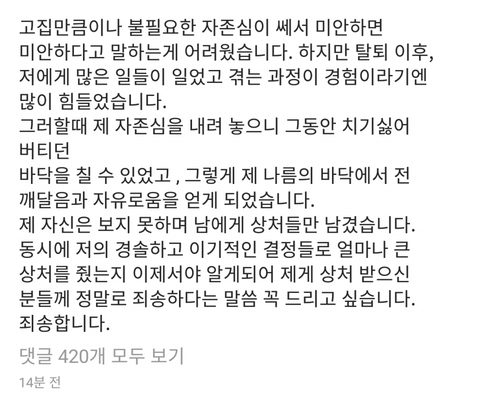 앨범 꼬라박으니까 이제서야 사과문이랍시고 글 올림.