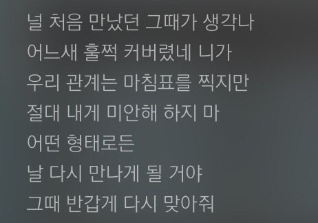 다른 노래들도 가사 충분히 이쁜게 많은데 내가 하나에 꽂히면 그것만 들어서 노래를 많이 모른다는... 댓글로 너네가 생각하는 이쁜 가사 구절 적어줘!! ㅎㅎ