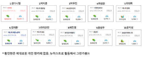 3. 네이버 개인팬카페 회원수 - 황민현은 없음 (뉴이스트라서)