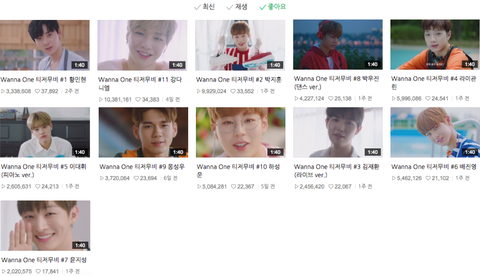 1. 네이버 캐스트 멤버별 티저(좋아요 순) - 스밍으로 줄세우기 제일 심했다고 함
