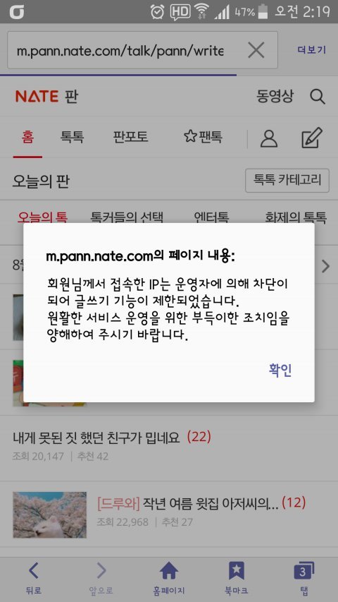 나 어제 안티들이 쉴드댓으로 도배했다고 단체로 신고해서 ip정지 당했거든? 반대로 생각해봐 우리가 신고하면 정지시킬수 있다는 것이야 비록 잠자고 일어나보니 풀려있기는 했지만 신고를 습관화하자!