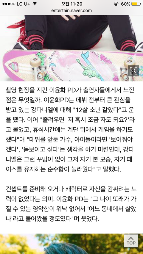 이불밖pd "강다니엘은 12살 소년같이 순수"