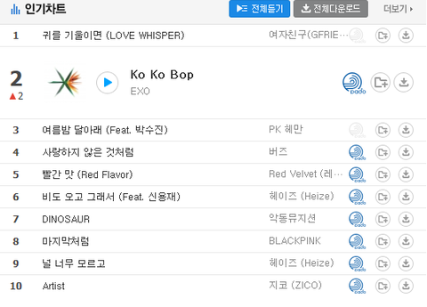 어제는 수록곡이 순위상승인 반면 타이틀인 코코밥은 순위변동없었음