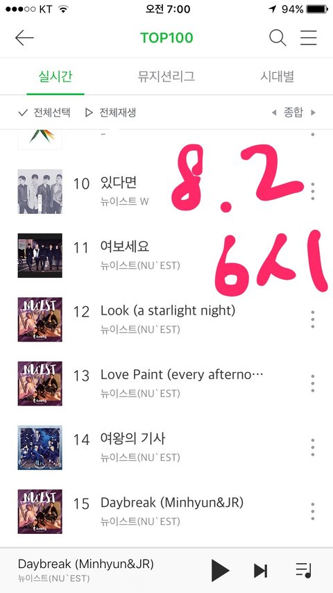 7시 됐는데 6시 차트 넘어가기전에 줄선거 보니