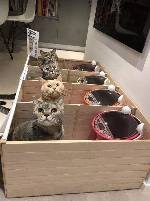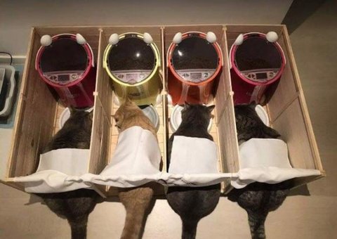 식탐이 심한 반려묘들을 위해 주인이 마련한 칸막이 식당 식당 이름은 '이치란 라면'