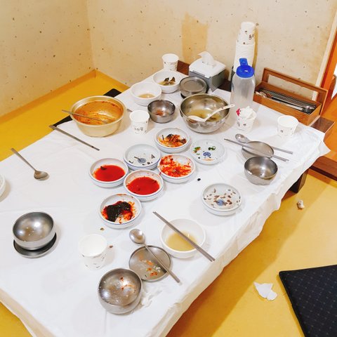 옆 테이블 식사한 흔적이 있어 이건 어찌 된 일이냐고 물어보니 어제 해뒀던 반찬으로 내준 거라고 하시네요^^