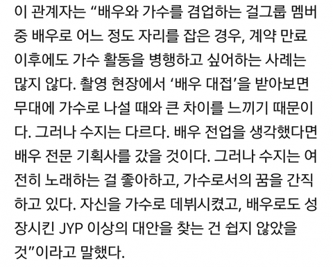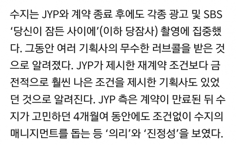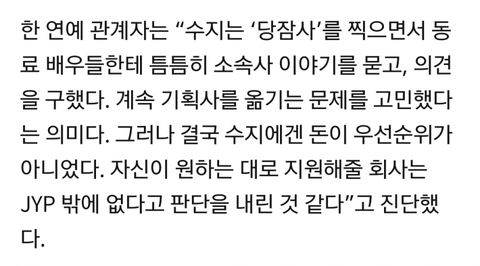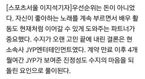 솔직히 수지가 대단한거지 돈욕심 안부리고 재계약하는거 쉽지않음.