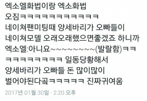 아 엑소 말하는거 개웃김ㅋㅋㅋㅋㅋㅋㅋㅋㅋㅋㅋㅋㅋㅋ