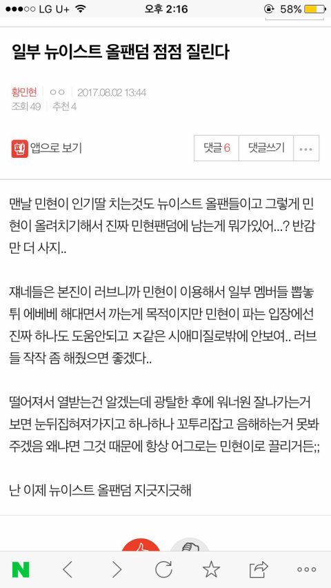 +)밑에 글에 들어가지말고 댓글도 쓰지 말자