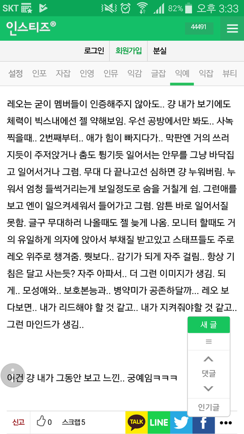 누가 택운이가 팀내에서 체력 제일 약한 것 같다고 하던데...