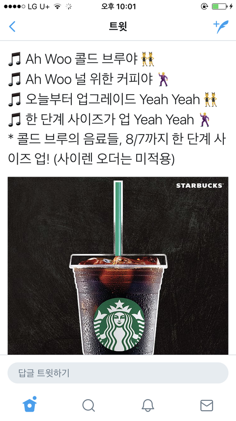 스벅 코리아 트위터 계정에서 트렌드에 맞춘 마케팅이라면서 엑소의 코코밥 노래를 개사해서 이벤트성 트윗을 올림