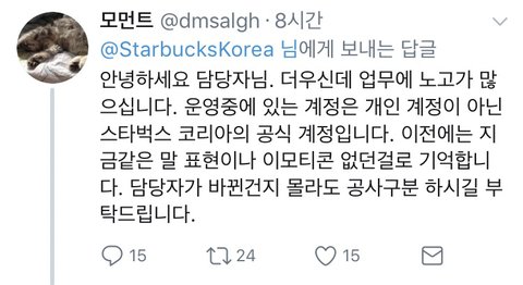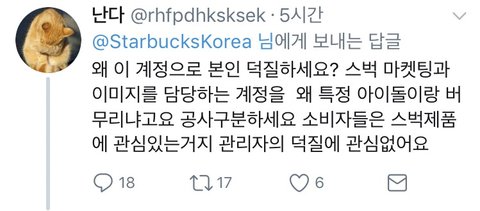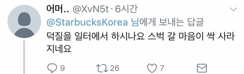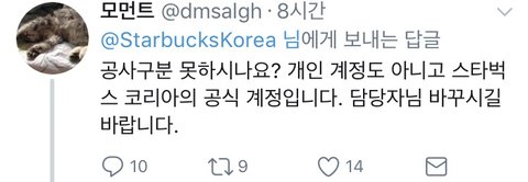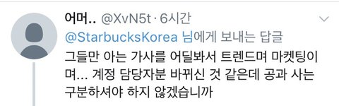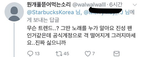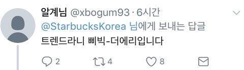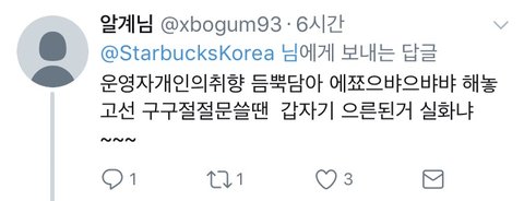 트윗에 대한 반응 스벅을 안간다니.. 주문하는 법은 아는건지.. 돈이 없어서 안가는건 아닌지...