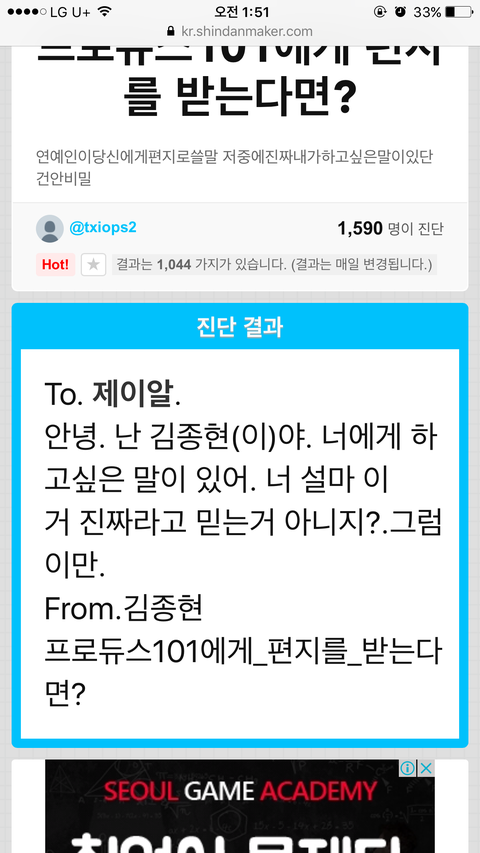 아무이름이나 넣으면 픋유 출연자 이름 나와 ㅋㅋ