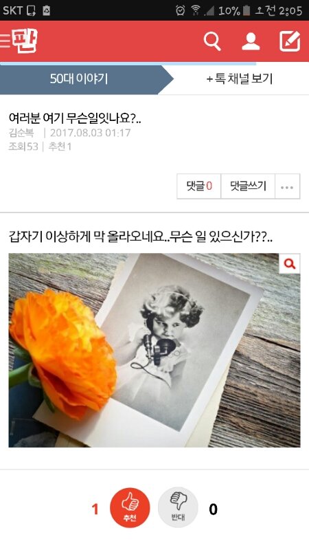 혹시 쓴 사람들에게 말하고 싶은 건 지금이라도 삭제해 줬으면 좋겠어 세대차이가 많을 50대 분들이 10대판에 와서 전혀 모르는 소리를 하면 우리 공간을 침해받은 것 같고 불편하듯이 50대 분들도 그렇게 생각하실 거라 생각해!! 그래서 혹시라도 글 올린 애들은 조금 귀찮더라도 삭제해 줘 ❤
