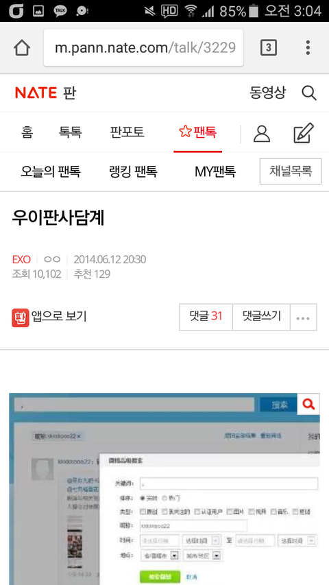 팬톡 검색 보기