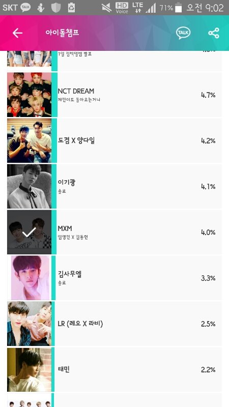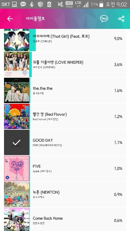 아이돌챔프는 어플깔아서 톡으로 로그인해서 쉽게 투표하기! 노래랑 그룹 2개다!!❤