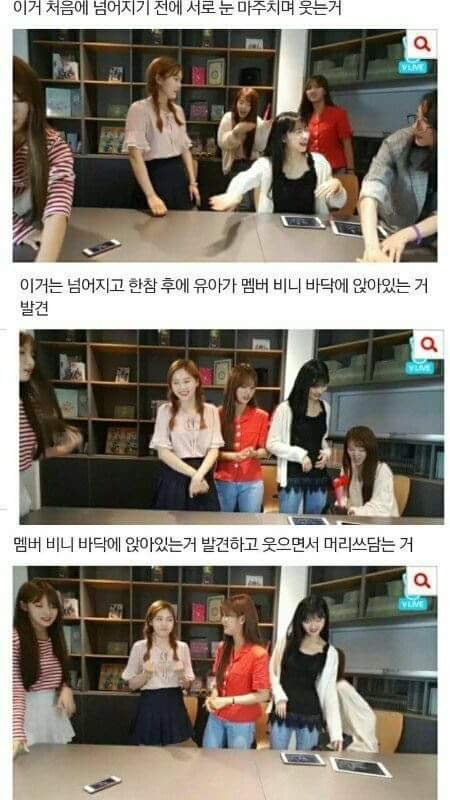 우선 첫번째 영상은 비니가 넘어졌는디 유아가 보고도 무시했다는데 보고 무시한게 아니고 브이앱 채팅방 보고 있어서 넘어진 걸 모른 거야